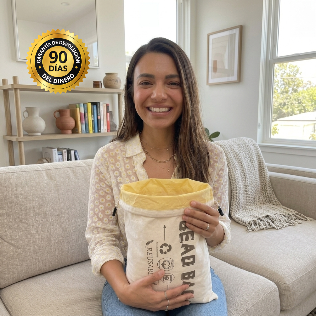 Muchas bolsas en Amazon mezclan poliéster y plástico TPU. Breva usa 100% algodón con cera de abeja natural. Sin plástico, sin atajos.